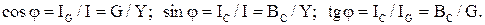 Зв'язок між діючими величинами напруги і струму та коефіцієнтом потужності виражається співвідношеннями: