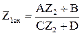 . З цієї системи можна одержати інші рівняння; наприклад, у яких заданими можна вважати напругу і струм на виході чотириполюсника, а шуканими – напругу і струм на вході (система рівнянь у «система А») U1 = AU1 + BI2, I1 = CU2 + DI2. В цій системі комплекси А, В, С, D називаються первинними коефіцієнтами чотириполюсника; за умови лінійності елементів чотириполюсника справедливим є співвідношення коефіцієнтів: AD – BC = 1. Між коефіцієнтами чотириполюсника в обох системах існує однозначний зв'язок: