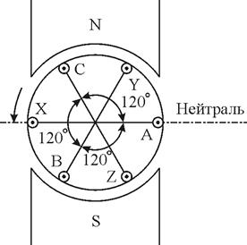 Рисунок 7.2 – Схема трифазного генератора Комплекси діючих величин цих Е.Р.С.: