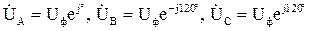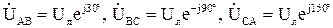 Комплекси фазних та лінійних напруг визначаються наступним чином: