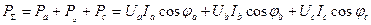 а напруга Ub і Uc зменшаться до значення При обриві лінійного провідника А струм у фазі «а» відсутній (Ia=0) і трифазна система перетворюється на однофазний ланцюг з послідовним з'єднанням елементів Rb і Rc і струмом Потужність в трифазній системі визначається як сума потужностей, споживаних фазами приймача. Сумарна активна потужність: