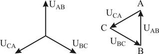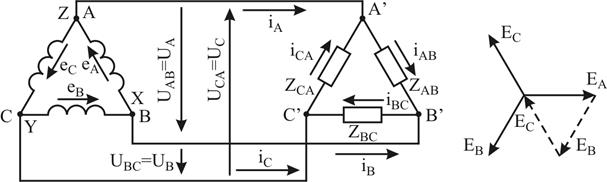 Рисунок 8.3 – Неправильне з'єднання трикутником обмоток джерела Із схеми з'єднання трикутником (рис. 8.2) видно, що фазні і лінійні напруги співпадають:
