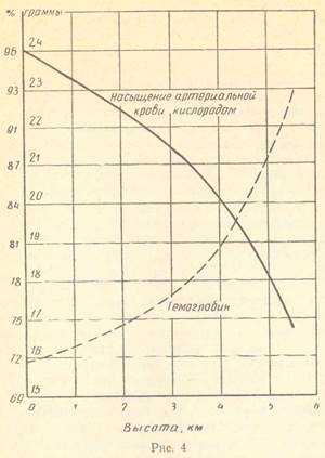 В результате некоторых реакций, обусловленных кислородной недостаточностью, в крови увеличивается не только количество эритроцитов (красных кровяных телец, содержащих гемоглобин), но и количество самого гемоглобина (рис. 4).