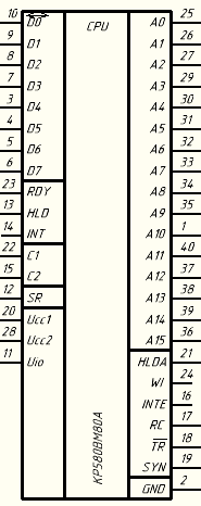 Заключение Микропроцессорная система на ИМС серии КР580 может использоваться во множестве схем вычислительных машин и устройств управления. Конфигурация используемой системы определялась заданием на курсовой проект. В систему могут быть добавлены: контроллер электронно-лучевой трубки (КР580ВГ75) и контроллер клавиатуры и дисплея (КР580ВВ79) для сопряжения ЭВМ с алфавитно-цифровыми дисплеями и ввода-вывода информации. Также можно добавить программируемый таймер (КР580ВИ53) для организации работы МКПС в режиме реального времени, а также может быть увеличена память МКПС. Новые компоненты потребуют для себя усложнение данной МКПС собственными схемами управления. МКПС на ИМС серии КР580 является простой, но даёт представление о проектировании МКПС в целом, поскольку все системы строятся по одному принципу.
