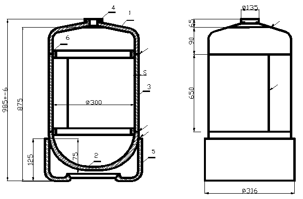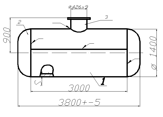 Технические условия 1 Химический состав стали по ГОСТ 19281-89, ГОСТ 380-94 и ГОСТ 5520-79, сортамент проката листового горячекатаного по ГОСТ19903-74, технические условия на прокат по ГОСТ55020-70. 2 Рабочее давление в сосуде до 0, 3 МПа. 3 Овальность обечайки не должна превышать 0, 5 % от диаметра. 4 Смещение кромок стыковых швов не более 0, 5 мм. 5 Отклонение предельных размеров по длине и диаметру сосуда нет должна превышать ±2 мм. 6 Все сварные швы должны быть плотными. 7 Трещины не допускаются. 8 Катет сварного шва N2 =1, 0 S подставки.