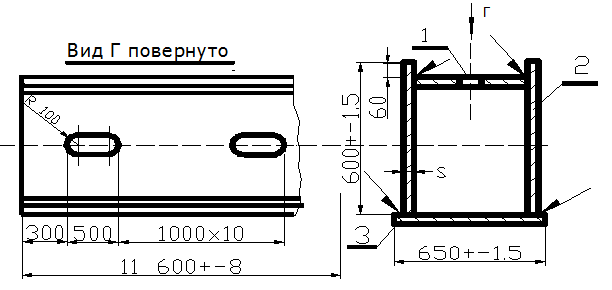1. Химический состав стали по ГОСТ 4543, сортамент широкополосного проката по ГОСТ 82-70, узкополосного по ГОСТ 103-76. Технические условия на прокат по ГОСТ 1577-81. Нормативная документация РД 34.15.132-96, СНиП III-18-75. 2. Балка работает при температуре от +40о С до -40о С. 3. Допускается стрела прогиба не более 1 мм на метр длины балки. 4. Допускаемые дефекты согласно Приложения РД 34.15.132-96 5. Швы №1 должны иметь сквозное проплавление с хорошим формированием корня. 6. Для швов №2, №3 допускается непровар до 20% от толщины основного металла. Катеты швов равны половине толщины основного металла с допуском ±1мм. Для варианта А катеты швов равны толщине основного металла с допуском ±10 мм. 7. Для варианта задания А ширина ребер жесткости должна быть 170 мм. Для Б и В – 160 мм.