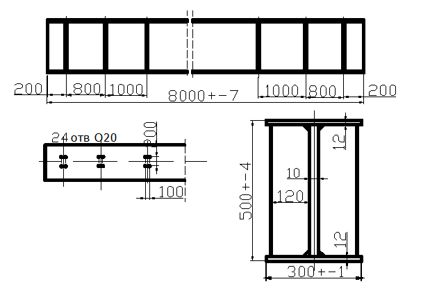Технические условия. 1. Химический состав стали по ГОСТ 20072-74. 2. Проушина работает в особо тяжелых условиях. Подвергается непосредственному воздействию динамических и вибрационных нагрузок.. 3. В сварных швах скопление пор и неметаллических включений не допускается. 4. Допускаемые дефекты согласно РД 34.15.132-96 №18. Разработать технологию изготовления балки двутавровой. Производство средне серийное, годовой выпуск 500 шт. при двухсменной работе участка.