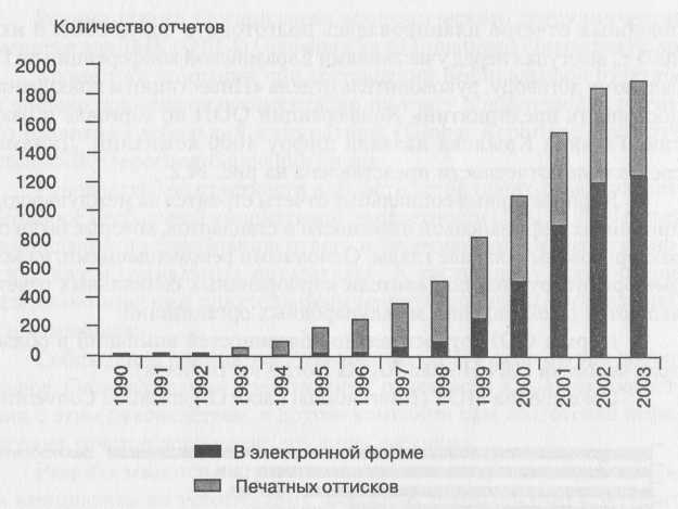 Основные функции корпоративной социальной отчетности: ■ информирование всех заинтересованных сторон о деятельности компании, в том числе предоставление дополнительной информации инвесторам и акционерам; ■ достижение доверия со стороны заинтересованных сторон через информацию и прозрачность деятельности. Первые отчеты, появившиеся в начале 90-х гг. XX столетия, носили преимущественно экологический характер. В 1993 г. было издано около 50 отчетов, а в 1999 г. эта цифра увеличилась более чем в 10 раз. В 2003 г. было выпущено свыше 1800 отчетов, как в печатной, так и в электронной форме. В 2004 г., по оценкам специалистов, подобных отчетов планировалась подготовить более 2000. 8 июня 2005 г., выступая перед участниками Евразийской конференции по Глобальному договору, руководитель отдела «Инвестиции и конкурентоспособность предприятий» Конференции ООН по торговле и развитию Татьяна Крылова назвала цифру 4000 компаний. Динамика составления отчетности представлена на рис. 2. Корпоративные социальные отчеты строятся на международных принципах нефинансовой отчетности и стандартов, которые были охарактеризованы в начале главы. Основными рекомендациями, на которые ориентируются составители корпораивных социальных отчетов, являются рекомендации международных организаций: Нормы ООН относительно обязанностей компаний в области прав человека (UN Human Rights Norms for Business); Соглашения MOT (International Labor Organization Convention); Рис. 2. Выпуск нефинансовых отчетов по странам, начиная с 1992-го по 2005 г.