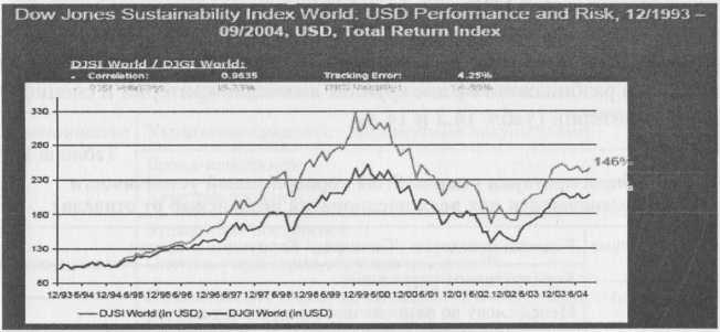 (Dow Jones Sustainability Index: CSR Brings Higher Returns)** * Диаграмма была приведена в выступлении во Всемирном банке пред-ставителем Всемирного банка в России Кристаллиной Георгиевой (Kristallina Geargieva) Corporate Social Responsibility: the Public-Private Interface. Конференция под названием «Государство и бизнес: социально ответственное партнерство» состоялось в Москве 20.05.05. ** https://www.Worldbank.org