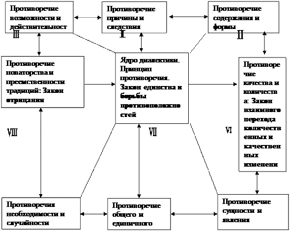 а) причина - явление или группа явлений взаимодействующих между собой, предшествующих другим и вызывающих их; б) следствие - явление, вызываемое действием причины; -причина всегда предшествует следствию, но следствие не является достаточным признаком причины; -причинно — следственные отношения многообразны; - различия между причинными отношениями определяются характером самих явлений и главенствующей ролью какого — либо вида причин; в)необходимость - это явление или событие, которое при наличии определенных условий обязательно наступает; г)случайность - связь причины и следствия, при которой причинные основания допускают реализацию любого из множества возможных альтернативных следствий; -случайное событие наступает как результат воздействия некоторых из неопределенно большого числа разнообразных и в точности неизвестных причин; - необходимость и случайность могут превращаться друг в друга: случайное в одних условиях становится необходимым в других, и наоборот; д)возможность - предпосылка возникновения того или юного явления, процесса, его потенциальное существование; е)действительность — это осуществляемая, реализованная возможность.
