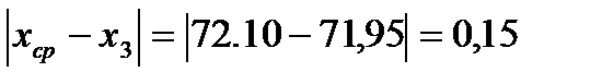 Решение: При однократных измерениях обнаружить промах не представляется возможным. Для уменьшения вероятности появления промахов измерения проводят два-три раза, и за результат принимают среднее арифметическое полученных значений. При многократных измерениях для обнаружения промахов используют статистические критерии, предварительно определив, какому виду распределения соответствует результат измерений. Вопрос о том, содержит ли результат наблюдения грубую погрешность, решается общими методами проверки статистических гипотез. Проверяемая гипотеза состоит в утверждении, что результат наблюдений не содержит грубой погрешности, т.е. является одним из значений измеряемой величины. Пользуясь определенными статистическими критериями, пытаются опровергнуть выдвинутую гипотезу. Если это удастся, то результат наблюдений рассматривают как содержащий грубую погрешность и исключают. Для выявления грубых погрешностей задаются вероятностью Критерий «трех сигм» применяется для результатов измерений, распределенных по нормальному закону и достаточно надежен при числе измерений В случае, если число измерений При числе измерений В нашем случае для оценки наличия грубых промахов можно воспользоваться критерием Греббса-Смирнова или Шовинэ. Будем использовать критерий Шовинэ. Для этого рассчитаем среднее значение восьми измерений ширины головки рельса: