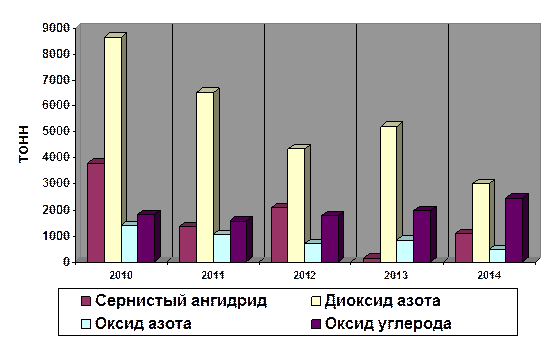 Рисунок 3.3 – Выброс загрязняющих веществ в атмосферу города Новолукомля в 2010-2014 годах (тонны/год)