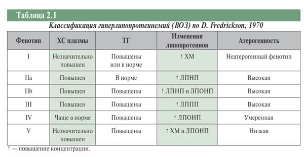 Препараты омега-3-жирных кислот (в основном, эйкозапентаеновой и докозагексаеновой) можно использовать для снижения уровня триглицеридов как альтернативу фибратам и в качестве дополнения к статинам в случае, когда комбинированная гиперлипидемия не под- даётся лечению только последними. Существуют готовые препараты эфиров омега-3-жирных кислот и морских омега-3-триглицеридов. Таким образом, к показаниям можно отнести гиперлипидемии IIb и III в дополнение к диете и статину, гипертриглицеридемию. С осторожностью их следует применять при геморрагических диатезах, терапии антикоагулянтами, болезнях печени, у беременных. Кормление грудью является противопоказанием. Среди побочных эффектов чаще всего наблюдают нарушения пищеварения, реже - извращение вкуса, головокружение, головную боль, поражение печени, реакции гиперчувствительности, гипергликемию, очень редко - артериальную гипотензию, лейкоцитоз. 5.Классификация дислипидемий. Дифференцированный подход к применения гиполипидемических средств. Необходимо помнить, что фундамент лечения пациента с любым типом гиперлипидемии - диетические мероприятия: употребление в пищу свежих овощей и фруктов, хлеба грубого помола, злаков, молочных продуктов с низким содержанием жира, нежирных сортов мяса, рыбы. Для большинства пациентов диета - самостоятельный начальный метод лечения, а для некоторых - даже достаточный. Однако существуют ситуации, когда стартовая терапия не ограничивается диетой, а сразу включает назначение гиполипидемических средств: изначально слишком высокая концентрация ЛПНП и/или высокий риск сердечно-сосудистых осложнений (табл. 22-8). Во всех остальных случаях фармакотерапию назначают только при недостаточной эффективности диеты. Выбор гиполипидемического препарата зависит от вида гиперлипидемии. • Препараты выбора при лечении гиперхолестеринемии - статины. При их недостаточной эффективности может быть добавлен эзетимиб или анионообменные смолы. • При гипертриглицеридемии предпочтительно использование фибратов, альтернативным методом служит назначение омега-3-жир- ных кислот. • При комбинированной гиперлипидемии фармакотерапию начинают с назначения статинов. К лечению могут быть добавлены фибраты, никотиновая кислота, омега-3-жирные кислоты К факторам риска относят: возраст (для мужчин более 45 лет, для женщин более 55 лет или ранняя менопауза при отсутствии заместительной гормональной терапии), семейный анамнез (ближайшие родственники больных с ранним началом ИБС: у мужчин моложе 55 лет, у женщин - 65 лет), курение, АД выше 140 и 90 мм рт.ст., низкаую концентрацию ЛПВП, сахарный диабет. Необходимо помнить, что комбинации статинов с фибратами и никотиновой кислотой повышают риск побочных эффектов, включая рабдомиолиз, и поэтому должны использоваться с осторожностью. Гемфиброзил не следует применять одновременно со статинами из-за существенного повышения риска токсичности. По достижении эффективной дозы гиполипидемического препарата (или комбинации препаратов) лечение продолжают длительно, часто необходим пожизненный приём препарата, а при его отмене наблюдают «рецидив» заболевания. Критерий эффективности терапии гиперхолестеринемии - достижение так называемого целевого уровня холестерина ЛПНП, который различается в разных группах пациентов