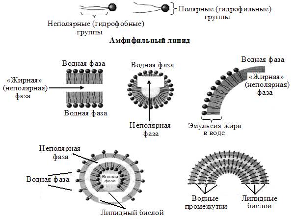 Рис. 4.7. Структуры, образуемые липидами в водной фазе.