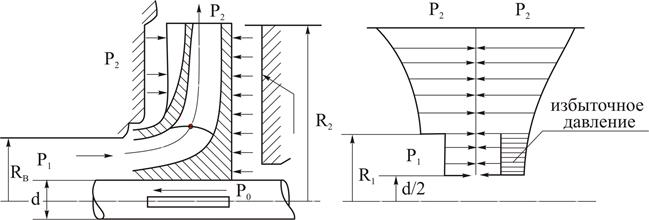 Рабочее колесо одностороннего входа представляет собой неуравновешенную систему из-за отсутствия симметрии относительно плоскости, перпендикулярной оси вращения насоса. В результате возникает осевая сила давления, направленная в сторону входного отверстия рабочего колеса (рисунок 3.6). Точно определить осевую силу затруднительно, так как давление между корпусом и колесом изменяется в радиальном направлении. Для ориентировочных расчетов можно воспользоваться формулой: