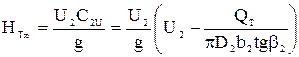 Ранее имели Полученное выражение представляет собой линейную зависимость При этом для лопаток, загнутые назад При При При радиальном выходе из колеса