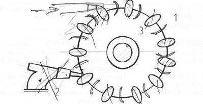 Рисунок 8-2 На рисунке 8-2 представлена схема гидравлической турбины с внешним подводом жидкости: (центростремительная) турбина Френсиса. Она состоит из статора 1, ротора 2, вала 3 и подводящего канала 4.