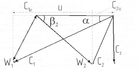 Установим связь между моментом и числом оборотов турбины, воспользовавшись полигоном скоростей (рисунок 8-12):