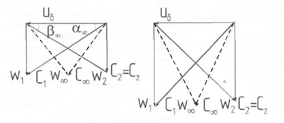Ее полигон скоростей симметричный и профили лопаток статора являются зеркальным отображением профиля лопаток ротора: