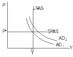 7. Предположим, что долгосрочная кривая AS вертикальна на уровне Y=3000, а краткосрочная кривая AS горизонтальна на уровне P=1. Кривая AD задана уравнением: Найдите новые равновесные значения Y и P в коротком периоде, если ЦБ не вмешивается, т.е. кривая AD не изменяется. Если ЦБ проводит стабилизационную политику для поддержания прежнего выпуска в коротком периоде, то какое дополнительное количество денег необходимо выпустить в обращение? Если ЦБ будет сохранять то же количество денег в обращении в течение длительного периода, то какими будут равновесные значения Y и P?