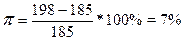 где Р – уровень цен в данном году, Р-1 – уровень цен в прошлом году. Для примера предположим, что уровень цен какого-то года принят за 100. При этом в прошлом году индекс цен составил 185, а в данном году он достиг 198. Отсюда вытекает, что за этот год цены выросли примерно на 7%. Расчет таков: