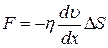 Д – коэффициент диффузии: II. Перенос импульса молекулами из соприкасающихся слоёв газа или жидкости, в которых молекулы движутся с разными скоростями в одном направлении, определяют силы внутреннего трения (их называют вязкостью). Сила внутреннего трения F между двумя слоями жидкости определяется уравнением