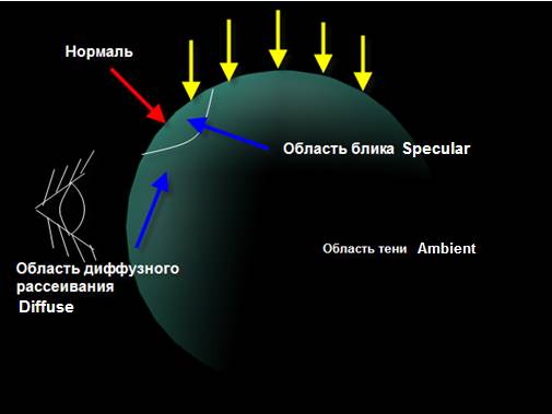 коэффициент преломления (refractive index) – рисунок 49б. глянцевость (shininess) – рисунок 50а - сфера с матовой поверхностью, а на рисунке 50б с глянцевой поверхностью;
