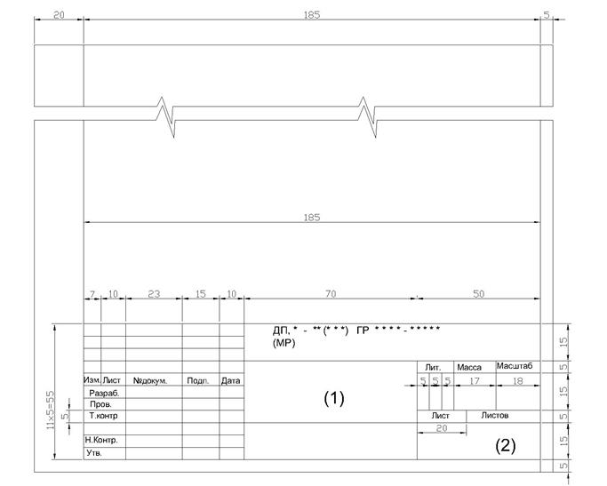 Графічна частка дипломного проекту може бути представлена на листах креслярського паперу формату А1, А2, А3 і А4 (за рішенням керівника ДП і МР). Графічна частка служить ілюстративним матеріалом при захисті ДП і МР і повинна забезпечити повніше розуміння членами ДЕК і присутніми на захисті суті проекту, що захищається. Креслення виконуються ручним способом або за допомогою засобу комп'ютерної техніки. Розмір зображень, написів і тексту таблиць повинен забезпечити можливість їх прочитання з відстані не менше 5 м. Кожне креслення повинне мати спільний заголовок. Кожна ілюстрація(таблиця, графік, діаграма-схема) повинна мати свій короткий заголовок, логічно пов'язаний із спільними назвою креслення. Приклад оформлення основного напису для креслень представлений на малюнку Б13.1.Форма специфікації на кожну складальну одиницю, комплекс і комплект представлена в додатку В.3.