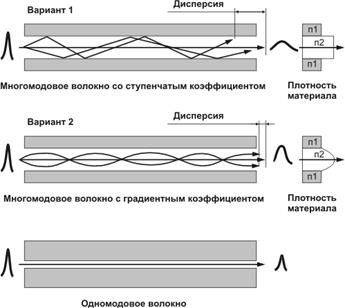 Одномодовые и многомодовые волокна, сравнительная характеристика.