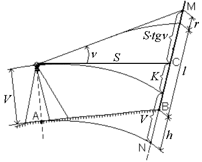 S∙ tgν + V + K = h + l + r, h = S∙ tgν + V – l + K – r,
