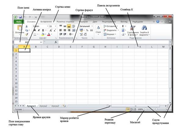Теоретичні відомості. ТЕМА: Загальний вигляд вікна Excel