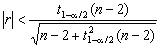 | в противоположном случае принимается гипотеза H 1, т.е. предполагается, что линейная зависимость между величинами существует; t 1– α /2(n – 2) – квантиль распределения Стьюдента с числом степеней свободы k = n – 2. Если принята гипотеза о существовании линейной зависимости между случайными величинами, то, зная доверительный интервал для коэффициента корреляции, можно сделать вывод о силе взаимосвязи между X и Y. Если доверительный интервал примыкает к единице или минус единице, то говорят, что связь сильная. Если доверительный интервал примыкает к нулю, то говорят, что связь слабая. Если доверительный интервал расположен примерно посередине интервала (–1; 0) или (0; 1), то говорят, что связь средней величины.
