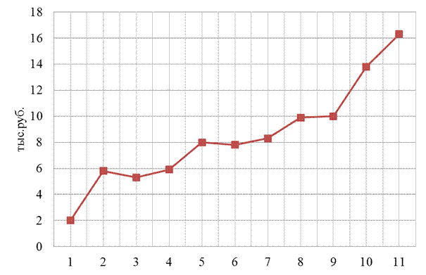 Порядок выполнения задания: 1. Построим график представленных данных (рис.2.1), для определения типа модели тренда.