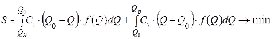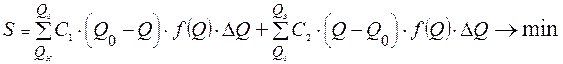 4. Определим интервал поиска решения оптимального заказа. При наличии данных о доверительных границах интервал поиска решения задаётся в них 5. Заменим интегрирование конечными разностями. Для расчётов интервал дискретизации следует принять равным Δ Q =1.