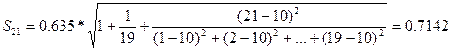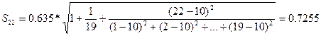 По показателям адекватности (средняя ошибка аппроксимации, коэффициент детерминации и стандартное отклонение) для прогнозирования выбираем полиномиальную функцию. Используя эту модель, можно рассчитать точечные и интервальные прогнозы. Точечные прогнозы: y21 = -0.0073*212 – 0.4947*21 + 29.001 = 15.393 y22 = -0.0073*222 – 0.4947*22 + 29.001 = 16.584 Расчет величин интервалов: