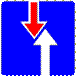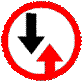 | 7. Який із зображених дорожніх знаків надає перевагу в русі зустрічним транспортним засобам?