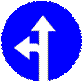 | 3. Який із зображених дорожніх знаків вказує на обов’язковий напрямок руху на перехресті в напрямку стрілку?