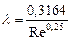 коэффициент трения зависит только от числа Рейнольдса и определяется по формуле Блазиуса (1913 г.):