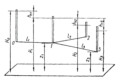 Рисунок 5.4 Схема тупикового трубопровода с тремя участками
