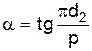 $$$ 8 Однозаходная резьба имеет шаг p. По какой из формул можно рассчитать угол подъема a? A) B) C) D) E) d, d1, d2 –наружный, внутренний, средний диаметры резьбы