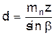 $$$ 42 По какой из формул рассчитывается делительный диаметр косозубого зубчатого колеса с углом наклона b, модулью нормальным mn и числом зубьев z? A) d=mnz B) d=mnzcosb C) d=mnzsinb D) E)