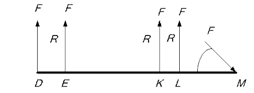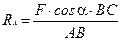 Де: AB і BC – відстані між точками; F – сила з якою гідравлічний поршень діє на балку.