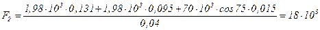 Вихідні дані: 1. Сила F =70∙ 10 2. Кут α = 75 Визначаємо силі, що діють на заклепки: Розраховуємо зусилля на балці 1.в точці А