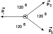Снаряд разорвался на три осколка (см. диаграмму импульсов), разлетевшихся под углами 120 градусов друг к другу. Соотношение между модулями импульсов: