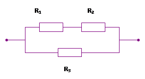 Чему равна напряженность электрического поля, создаваемого длинной равномерно заряженной нитью? В) Чему равно общее сопротивление цепи, показанной на рисунке, если R1=7 Ом, R2=11 Ом, R3=18 Ом?