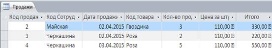 Структура таблицы «Продажи» представлена на рисунке 3. Рисунок 3