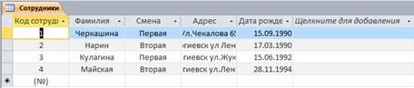 Структура таблицы «Сотрудники» представлена на рисунке 4. Рисунок 4