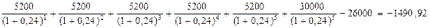 В связи с тем, что денежные потоки отличаются друг от друга в разные периоды, то определять внутреннюю норму рентабельности необходимо методом проб и ошибок. Для начала выберем ставку дисконтирования в 20%: NPV=