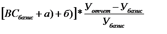 (S убранная отчет - S посеянная отчет) * У базис В) влияние изменения урожайности (У отчет - У базис) * S убранная отчет