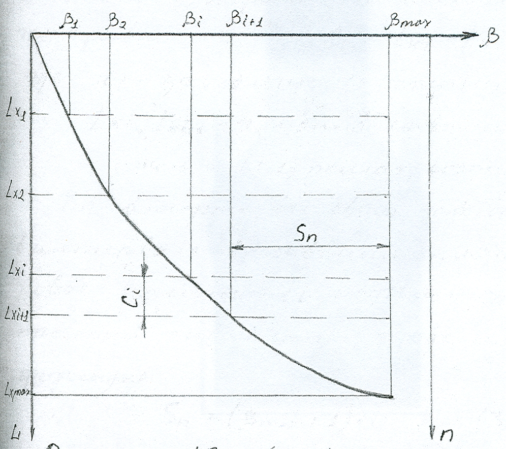 При расчетах элементов спуско-подъемного комплекса (СПК) на прочность. Необходимо знать режим нагружения и прочностные характеристики элементов СПК. Прочностные свойства (характеристики) элементов СПК определяются выбором материалов, их термообработкой, геометрией деталей и другими факторами. Режим же нагружения зависит от параметров кривой проходки, веса погонного метра труб бурильных и обсадных колонн плотности и вязкости бурового раствора и энергетических параметров СПК-мощности двигателей привода, КПД кинематической цепи СПК, коэффициента заполнения тахограммы. Для упрощения расчетов примем, энергетические параметры СПК, так же как и вес колонн, плотность бурового раствора и другими известными. Тогда режим нагружения будет определяться количеством подъемов (спусков) каждой свечи в бурильной колонне за цикл проводки скважины и действующими нагрузками при подъеме этих свечей. Для выполнения поставленной задачи необходимо кривую проходки представить так, как это показано на рисунке 2.1. Из рисунка можно видеть, во-первых, что с каждым долблением углубления скважины, выраженное количеством свечей равно